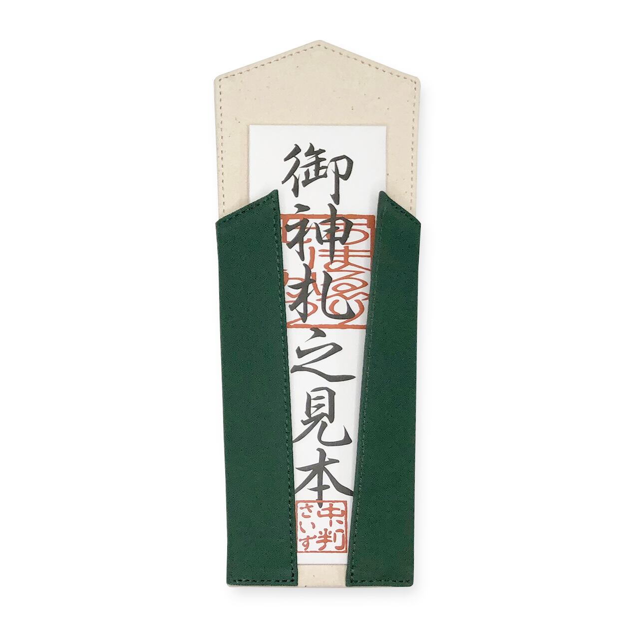 帆布が丈夫でハリがある素材とはいえ、帆布だけや、帆布と接着芯だけでは御札を支えるには頼りないため、御札がしっかりと支えられ、またきれいに見せれるように厚紙を芯材に利用しています。