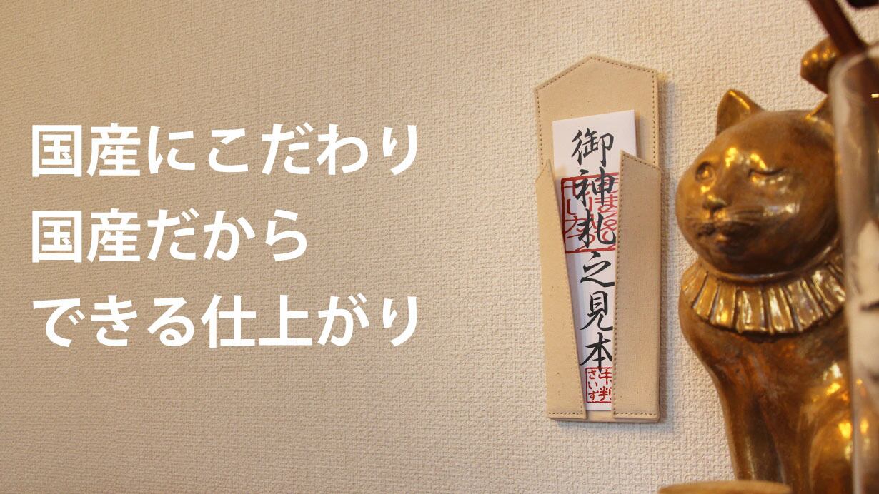 大きなサイズに対応すると小さな御札を飾る際にバランスが悪くなったりしますが、生地(帆布)の摩擦により小さな御札でも中央に祀ることを可能にしました。