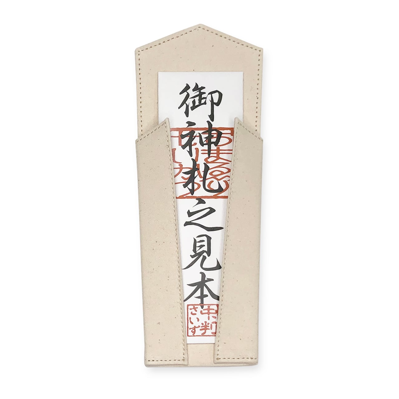 帆布が丈夫でハリがある素材とはいえ、帆布だけや、帆布と接着芯だけでは御札を支えるには頼りないため、御札がしっかりと支えられ、またきれいに見せれるように厚紙を芯材に利用しています。