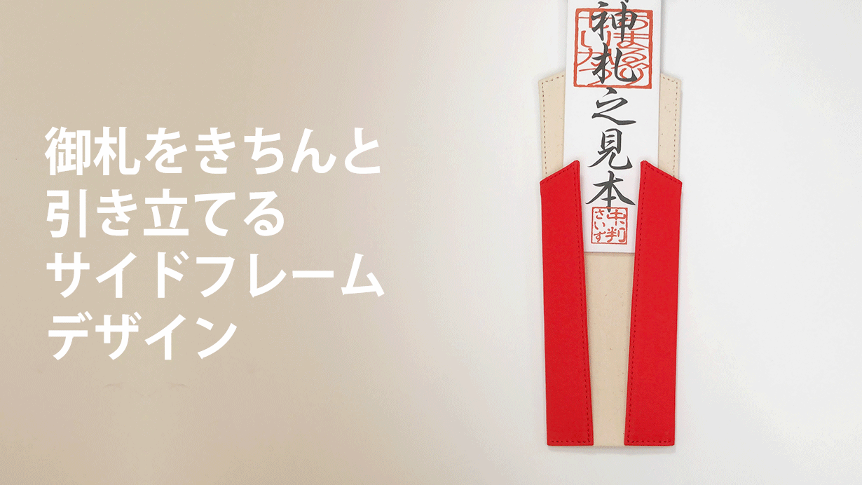 御札を大切に祀ることを考え「御札の字がきちんと見える」ように、サイドフレームにして真ん中がきちん見えるデザインになっています。